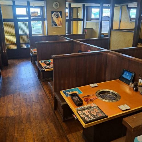 温かみのある照明と活気ある雰囲気が魅力です。広々とした店内は、ご家族での食事から大人数での宴会まで、あらゆるシーンに対応。店内はテーブル席もございます。車いすの方もご利用可能です。美味しいお肉を囲んで、みんなで「わいわい」と楽しい時間をお過ごしください。